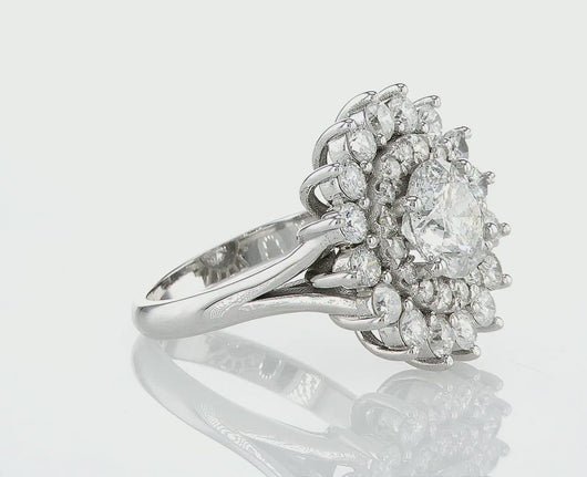 טבעת עם יהלום מרכזי טבעי במשקל 2 קראט ושני כתרי יהלומים מסביבו