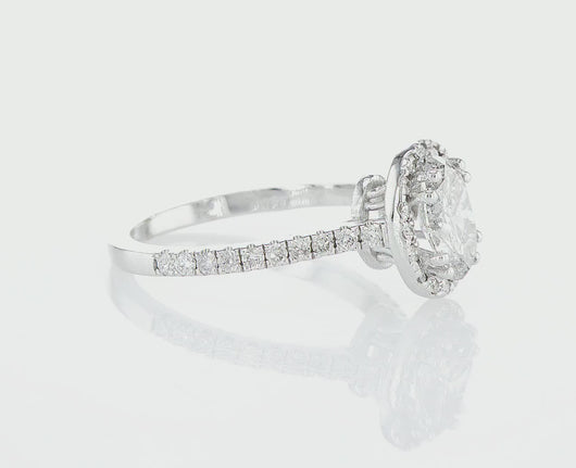 טבעת משובצת ביהלום טבעי בליטוש אובל ומוקף בכתר יהלומים