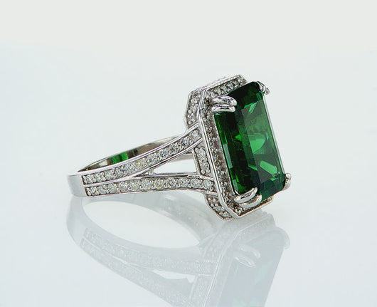 טבעת אלגנטית משובצת באבן חן גדולה ויהלומים טבעיים