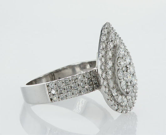 טבעת בצורת טיפה גדולה משובצת בעשרות יהלומים טבעיים