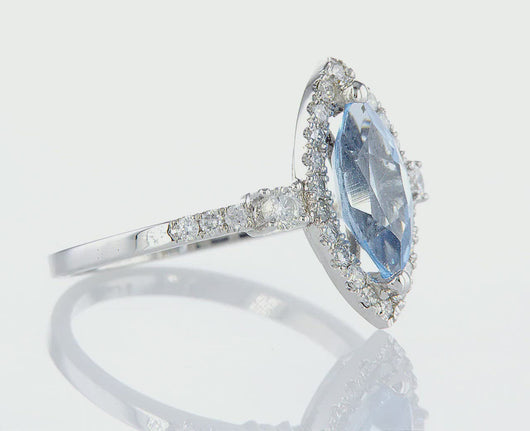 טבעת משובצת באבן חן בליטוש מרקיזה ומוקפת בכתר של יהלומים טבעיים