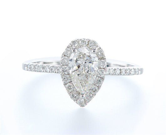 טבעת משובצת ביהלום טבעי גדול בצורת טיפה ומוקף בכתר יהלומים
