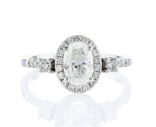 טבעת עם יהלום טבעי אובלי גדול עטוף בכתר יהלומים מרשים