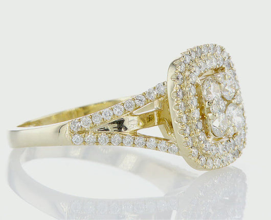 טבעת עם כתר ריבועי הבנויה ממספר מפלסים ומשובצת במאה יהלומים