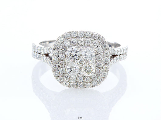 טבעת עם כתר ריבועי הבנויה ממספר מפלסים ומשובצת בעשרות יהלומים