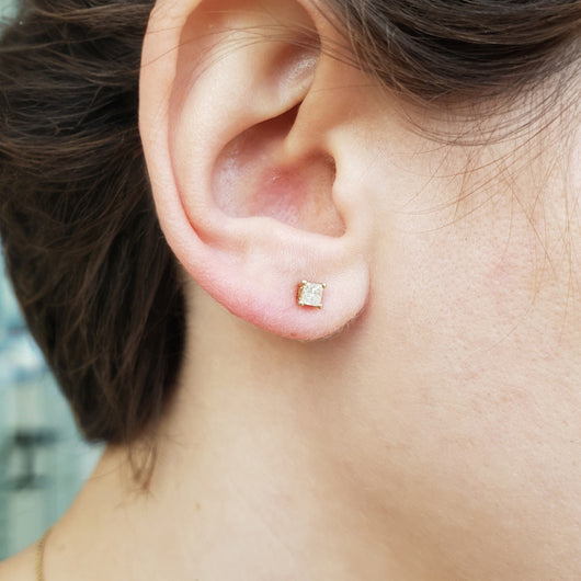 עגילי סוליטר צמודים לאוזן משובצים ביהלומים בליטוש פרינסס