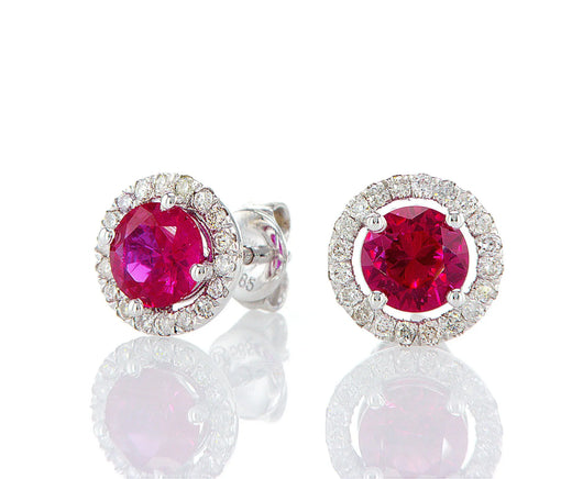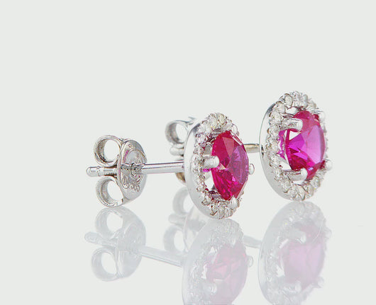 עגילים צמודי אוזן משובצים באבן חן עגולה ומסביבה כתר יהלומים טבעיים