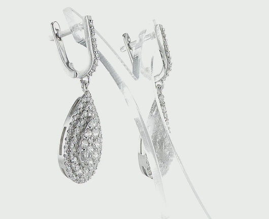 עגילים גדולים במודל טיפה מדורגת משובצים בעשרות יהלומים טבעיים