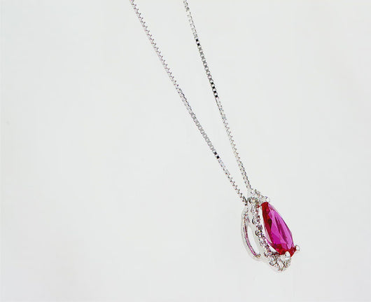 תליון בצורת טיפה עם אבן חן ומסביבה יהלומים טבעיים ושרשרת זהב